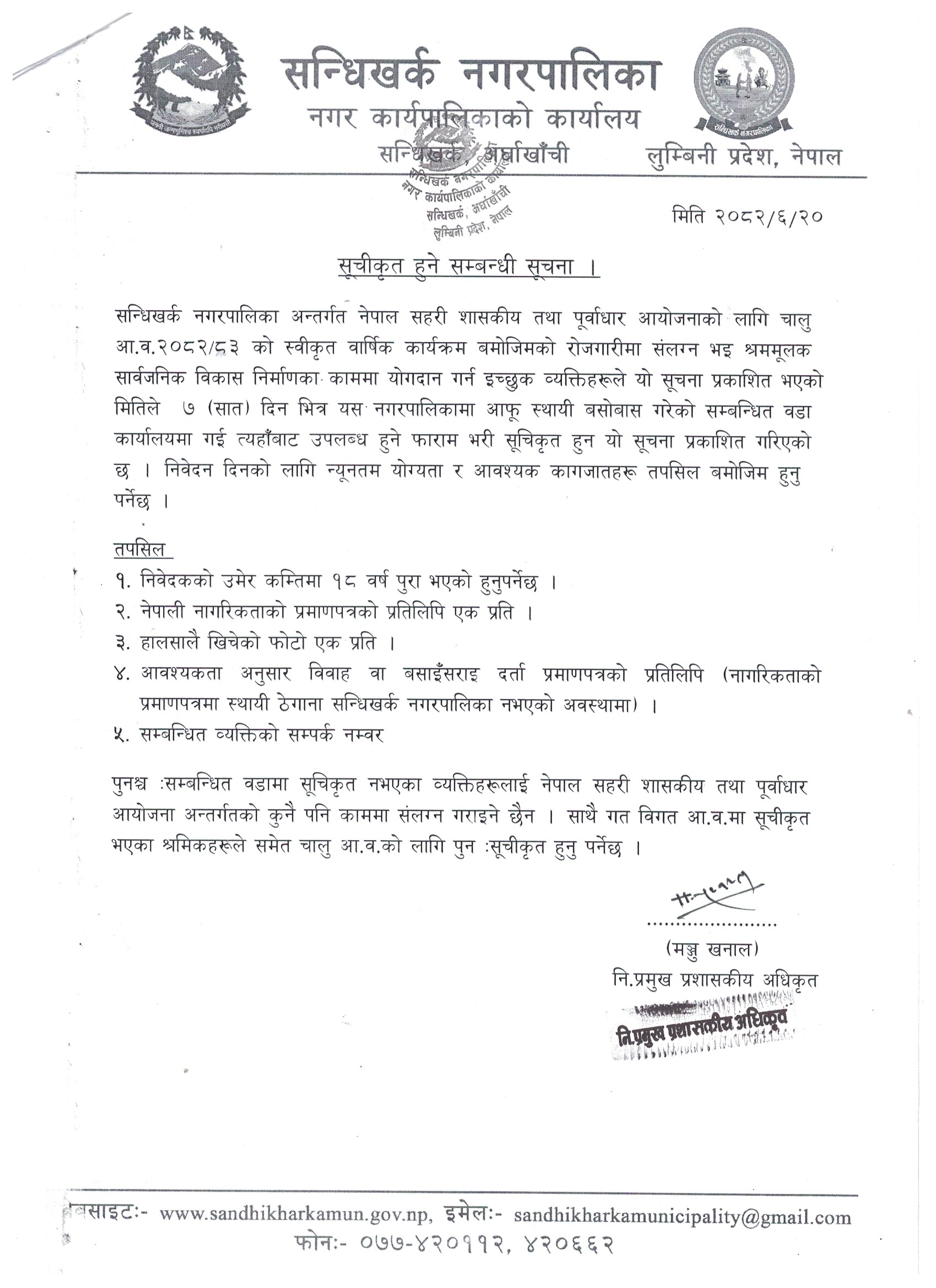 info@sandhikharkamun.gov.np, sandhikharkamunicipality@gmail.com