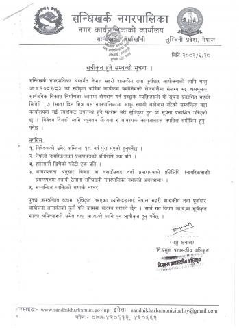 सन्धिखर्क नगरपालिकाको सूचना ।