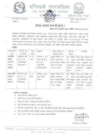 प्रस्ताव आह्वान सम्बन्धी सूचना ।