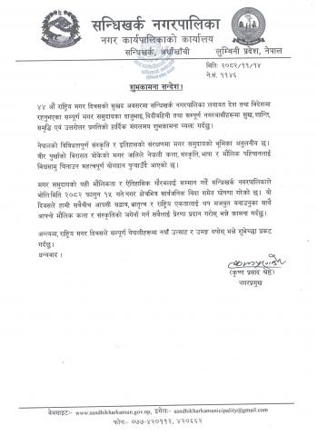 " सबै नगरवासीकाे रहर, सुन्दर र समृद्ध सन्धिखर्क नगर"