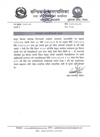सन्धिखर्क नगरपालिकाको सूचना ।