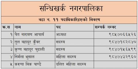 सन्धिखर्क नगरपालिका,नगर कार्यपालिकाको कार्यालय