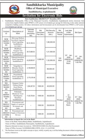 विद्युतिय बोलपत्र आव्हान सम्बन्धी सूचना ।