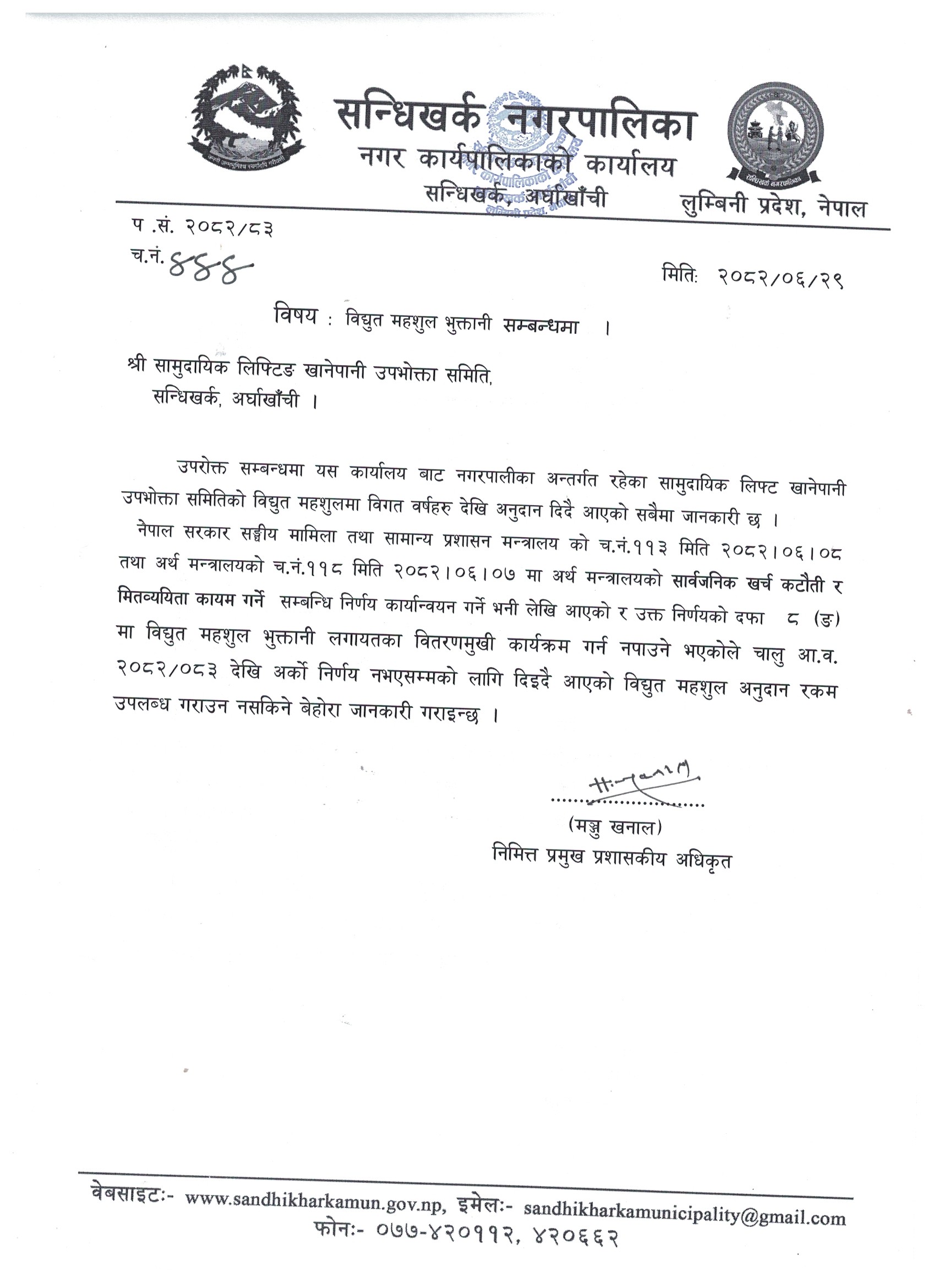 info@sandhikharkamun.gov.np, sandhikharkamunicipality@gmail.com