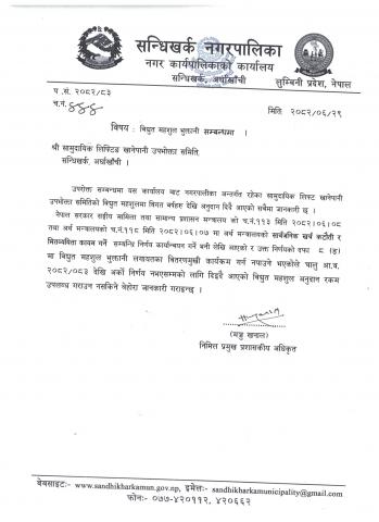 विद्युत महशुल भुक्तानी सम्बन्धमा ।