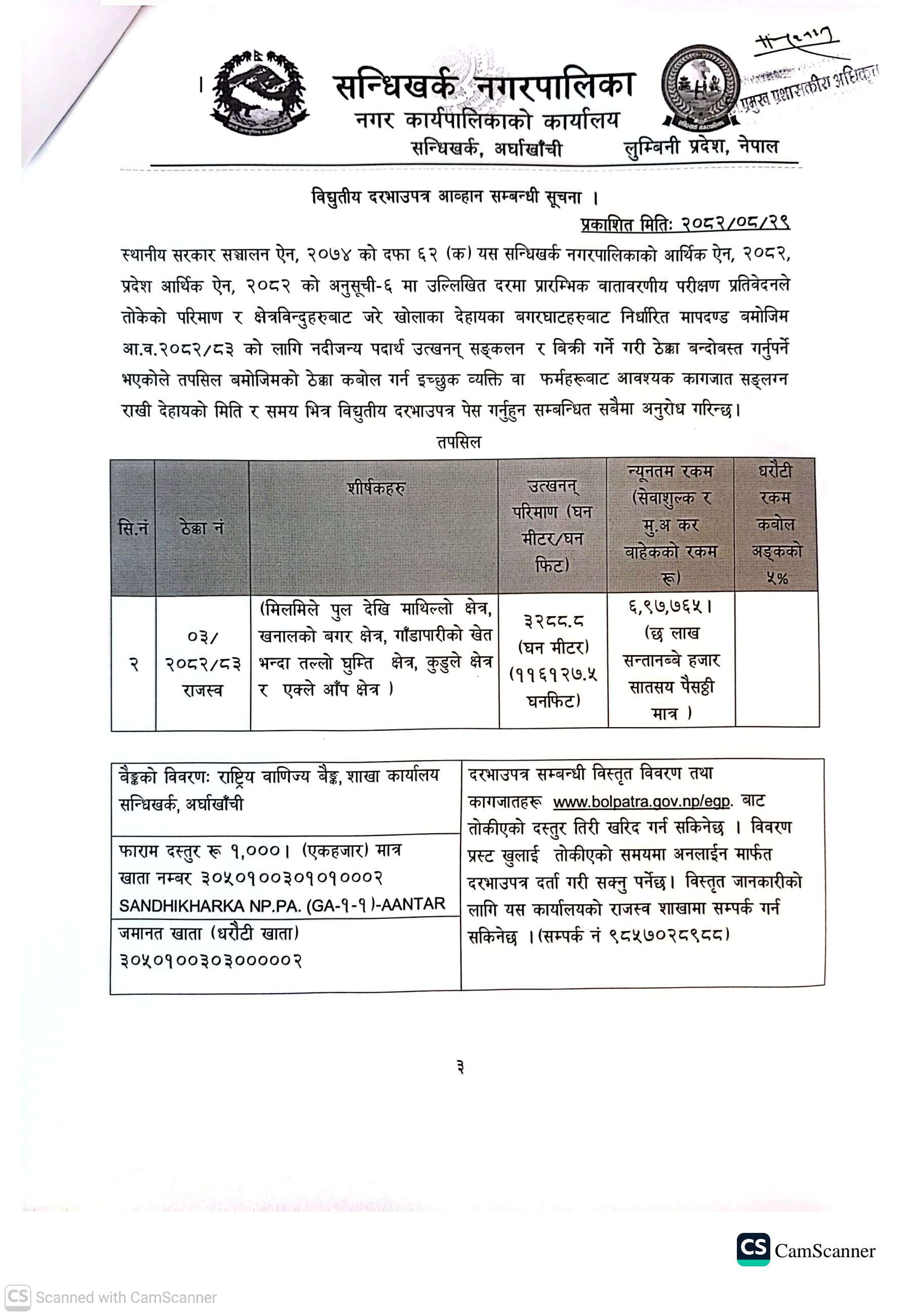 विधुतीय बोलपत्र आह्वान सम्वन्धी सूचना